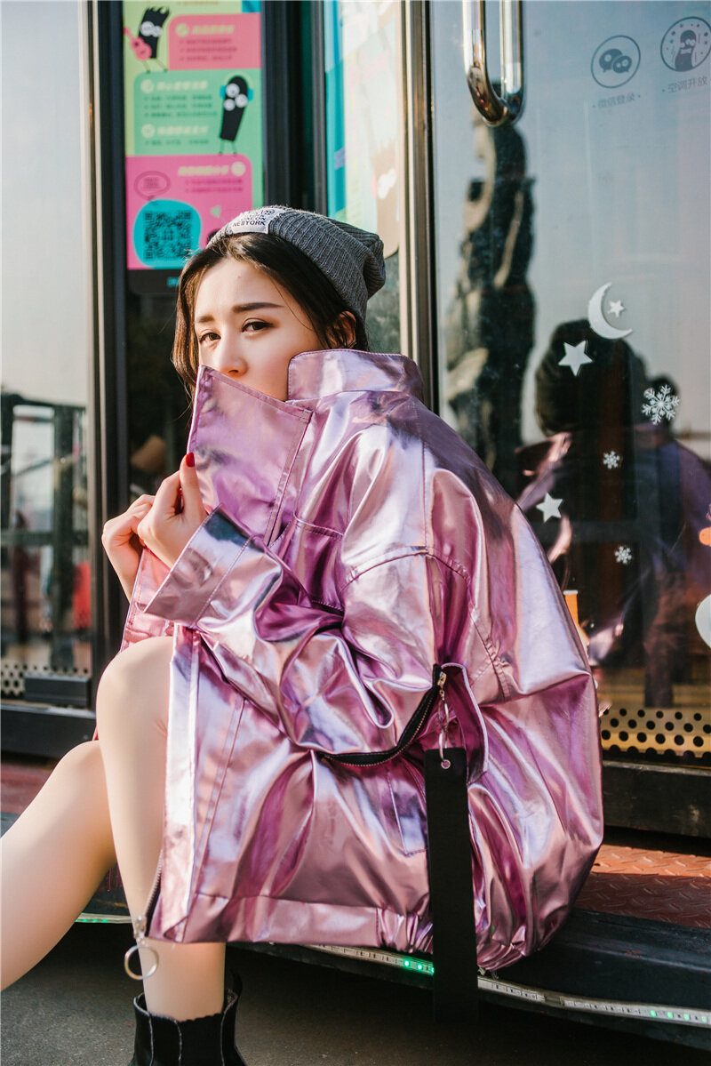 Cheerart Весна 2018 хип-хоп более Размеры D серебро куртка Для женщин кожа pu блеск пальто свободного кроя уличная Костюмы больш