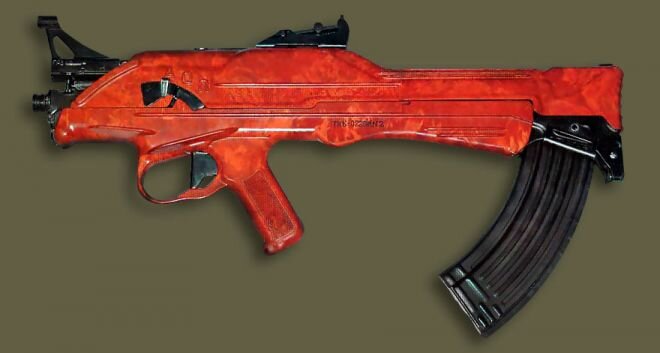 Автомат ТКБ-022ПМ отличался весьма передовыми на тот момент решениями – кроме пластикового корпуса, выброс стреляных гильз и вывод пороховых газов производился вперед у дульного среза оружия, что обеспечивало стрельбу как с правого, так и с левого плеча.