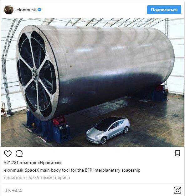 Илон Маск в своем инстаграме показал кусок корпуса для будущего межпланетного корабля BFR. BFR (Big Falcon Rocket) будет служить для выведения на орбиту межпланетных кораблей SpaceX. В нём будет 40, ЦЕЛЫХ 40 кабин для астронавтов, а его длина составит около 48 метров. Такзв он будет многоразовым. Вся это конструкция будет высотой в 106 метров, и 9 метров в диаметре. Говорят, что она способна вывести в космос 150 тонн груза. Ожидается, что первые испытания для полета к Марсу состоятся в 2019 году. Маск планирует, что запуски BFR выйдут дешевле, чем запуски ракеты Falcon 1.
