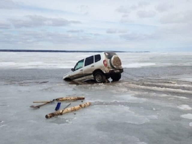 В Прикамье автомобиль с водителем и пассажиром провалился под лед