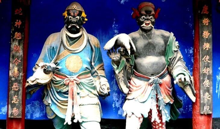 Согласно преданиям, каждый человек, умирая, попадает в этот город и проходит ряд испытаний на пути к следующей жизни. Сначала человек оказывается перед Найхэцяо — воротами в загробный мир — тремя каменными мостами. Добрый человек успешно проходит испытание, злой — падает в воду и оказывается в чистилище, из которого нет дороги в новую жизнь. Причем, чем меньше шагов сделано для перехода через мост, тем большей святостью обладает человек.
