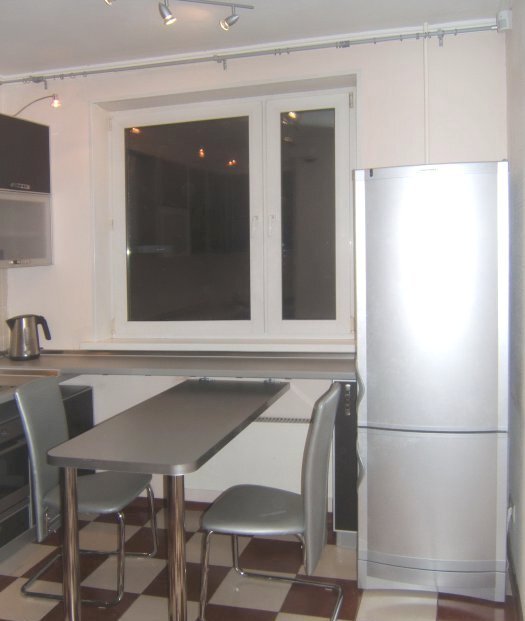 Функциональный дизайн кухни 9 кв.м. с выдвижным столом. 11 фото