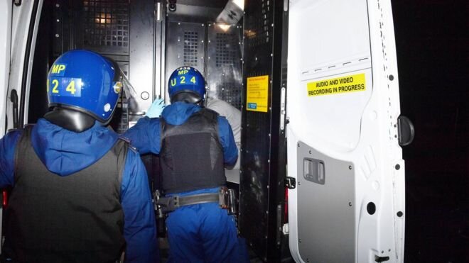 Восемь полицейских рейдов через западный Лондон нанесли «мощный удар по установленной банде», сообщает столичная полиция. В рейдах в Нортольде, Гринфорде, Фулхэме и Брентфорде были изъяты пулемет Скорпиона, боеприпасы, наличные деньги и подозреваемые наркотики класса А. Девять человек, включая 14-летнего мальчика, были задержаны по подозрению в преступлениях, связанных с наркотиками и огнестрельным оружием. Det Insp Driss Hayoukane утверждал, что банда «MDP» имела «развращенных детей». «Дети участвуют» Во время обыска на Стивендейл-роуд, Фулхэм, офицеры обнаружили пистолет-пулемет Скорпиона вместе с другим пистолетом, 40 патронами и килограммами подозреваемых препаратов класса А, сказал Скотланд-Ярд. В целом, шесть мужчин и три женщины в возрасте от 14 до 49 лет были арестованы рано утром и теперь находятся под стражей