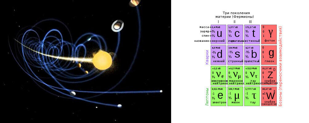 Я предположил, что если плавно поменять курс движения нашей солнечной системы в пространстве на 90 градусов относительно текущего направления, и продолжить движение с такой же скоростью, то вдруг обнаружится, что кварки из которых мы состоим, поменяют свой тип на какой-то другой, из другого поколения, скажем u-кварк, вдруг станет c- или t-кварком. Одновременно с этим, значения масс всех кварков перераспределится таким образом, что с- или t-кварк окажутся легче u-кварка, а u-кварк станет более массивным и ему сложно будет существовать в том мире. Поэтому ему придется распасться, либо развернувшись в пространстве, стать другим типом кварка. Но поскольку для того, чтобы распасться, нужно приложить дополнительную энергию, то скорее всего, кварк просто поменяет свой тип на какой-то другой. Давайте представим, что мы разогнали до околосветной скорости в Большом адронном коллайдере один протон, для последующего столкновения с антипротоном, который кружится в обратном направлении. Так вот, на мой взгляд, кварки внутри протона за один оборот меняют свой тип как минимум два раза. Это получается потому, что двигаясь по кругу, протон меняет свою скорость относительно пространства , вплоть до скорости, близкой к скорости света. И только когда сталкиваются эти частицы, появляются такие тяжелые кварки, как t-кварк. Из-за мощного столкновения протонов, виртуальный t-кварк (есть такое понятие) не может стать легким по причине большой скорости, и непосредственно при столкновении частиц обычный u или d-кварк в составе протона становится тяжелым t-кварком, который находясь в нашем мире, распадается на более легкие кварки, лептоны и бозоны.