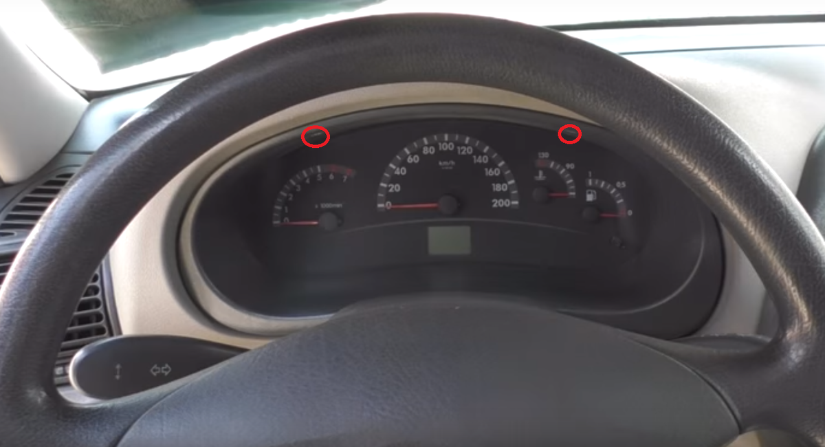 Для установки нам нужно демонтировать существующую панель приборов. Крестовой отверткой, желательно короткой откручиваем два верхних болта на панели за рулем. Руль желательно отпустить в крайнее нижнее положение. Перед заменой не забываем отключить зажигание, желательно снять аккумулятор.