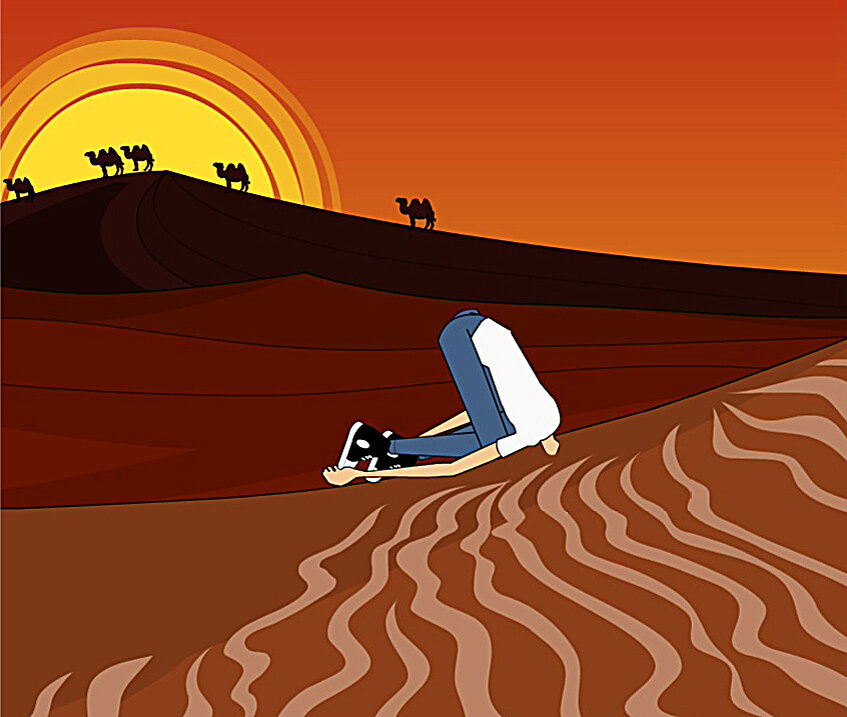 Если посмотреть на страну под определённым углом, то можно увидеть феерическое и очень завораживающее зрелище. Её территория заселена страчелами - помесью человека и страуса. Их популяция отличается уникальной, воистину феноменальной моделью мировосприятия. Голова страчела всегда зарыта в мягкий, тёплый, убаюкивающий песочек, его мелкие всепроникающие песчинки плотно забивают нежные глазки, ушки и ротик страчела. Филейная же часть оказывается ничем незащищённой, открытой суровым ветрам, непогодам, и доступна нехорошим дяденькам, желающим попользовать страчела в своё благо. Сама особь в это время пребывает в благостном ощущении теплоты, всепоглощающей слепоты, глухоты и немоты, создаваемые песочком.