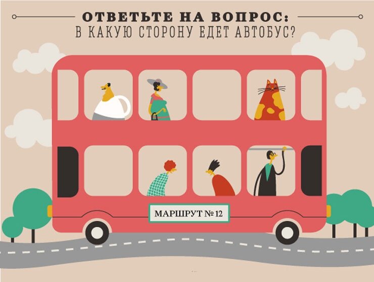 В прошлый раз мы развивали внимательность, а эти задачки уже посложнее! Попробуйте решать вместе с детьми. Поехали! 1. Знаменитая и относительно простая загадка. В какую сторону едет автобус? Ответ: Автобус едет влево. Это можно понять, так как на картинке не видно дверей, которые находятся у автобуса справа. 2. Очень простая задачка. Отгадала даже я! Ответ: Осталось также 10 рыбок, так как ни одна не покидала аквариум. 3. Вы точно сможете! Ответ: Цифра 87. Нужно перевернуть картинку. 4. Тут, кажется есть подвох! Ответ: Никто не лжет. У Роберта есть три сестры и они врачи. 5. Сможете найти семь ошибок, допущенных художником? Ответ: 1. Источник света луна, значит тень от вышки и знака отбрасывается не в ту сторону. От зайца и деревьев вообще нет теней. 2. Под ЛЭП всегда вырубают деревья, а тут они есть 3. На луне (на темном участке) нарисована звезда 4. Перевернута Большая медведица 5. По следам от машин непонятно как они разъехались - по логике следы должны были разойтись 6.