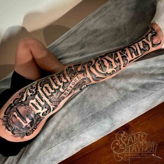Тату надписи и их значение для мужчин и женщин. Первоначально любая татуировка представляет собой выражение чувств к окружающему миру. И если рисунок носит одно, два и больше значений, то надпись всегда прямолинейна. Здесь очень редко скрывается тайный смысл. Это и стало одной из причин повышенной популярности тату надписей. Говоря о них, следует отметить, что рисунки следует подбирать в каждом случае индивидуально. К примеру, тату надписи и их значение для мужчин и женщин не всегда однозначны. Ведь порой то, что подходит сильному полу, слишком вычурно смотрится на женском теле. Подобрать татуировку – просто или сложно? Выбор надписи порой бывает долгим и мучительным процессом. Ведь когда не знаешь, что именно написать, руки не всегда самостоятельно выводят буквы. Если же решение созрело внезапно, а изречения все нет, можно обратиться к крылатым фразам. Излюбленными фразами выступают изречения на: Реже встречаются фразы на старорусском или арабском. Популярными долгое время были татуи