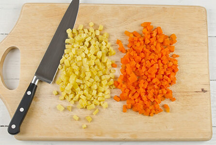 Вкусный салат для праздничного стола. Ингредиенты 1. Отвариваем картофель и морковь, охлаждаем и режем мелкими кубиками. 2. Берем две миски для картофеля и моркови. Добавляем майонез на каждый ингредиент и хорошенько перемешиваем. 3. Отвариваем и охлаждаем яйца режем мелкими кубиками. Также берем копченную куриную грудку и мелко режем кубиками. 4. Натираем голландский сыр. Измельчаем орехи. Отделяем зернышки граната. 5. Начинаем выкладывать ингредиенты послойно. Картофель, куриное мясо (намазываем майонез), орехи, сыр (намазываем майонез) , морковь, яйца (намазываем тонким слоем майонеза). Сверху сыпем зернышки граната. Приятного аппетита! Если Вам понравился рецепт не забудьте поставить палец вверх и подписаться.
