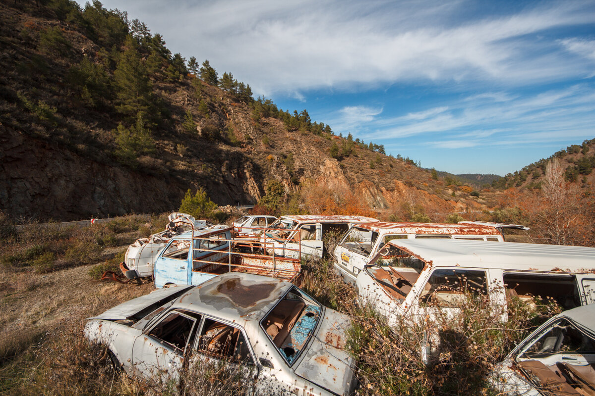 Как Вы думаете, как часто бьются машины в горах? А я Вам отвечу - очень часто. И поэтому наткнувшись на огромное количество заброшенных, битых автомобилей в горах я не был сильно удивлен. Но, чему я все таки был удивлен, что среди большого количества гражданских автомобилей, также было две раскуроченные машины местной полиции. Вот уж действительно, "внезапная" находка. Что уж тут поделать? Как только мы увидели это кладезь заброшенной эстетики, мы тут же остановились по фотографировать. Свалка небольшая, территориально. Но автомобилей на ней расположено довольно много. Очень плотно напихали. Почти все экземпляры заброшенной техники являются для нашего зрителя редкостью, здесь же, самые обыкновенные машины. Для нас конечно же экзотика, у нас такого не встретишь. Перейдем собственно к фишке, данного места. А именно заброшенным машинам полиции, которые и привлекли наше внимание. Да, красный диван здесь, словно декорации к фильму про гангстеров. Очень атмосферно, почему-то напомнило сери