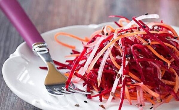 Эта легкая и сочная закуска из свежих овощей уникальна, поскольку помогает не только похудеть, но и способствует выводу шлаков и токсинов из организма, эффективно очищает кишечник, неудивительно, что она носит такое название. Салат “Щетка” – эффективное средство для оздоровления и похудения. Такой салатик легко поможет избавиться от накопленных за зимние месяцы килограммов. Рецепт салата Щетка от Елены Малышевой Нам понадобится равное количество овощей: капуста, морковь и свекла 1. Нашинковать капусту любым удобным способом (чем мельче, тем лучше), обжать ее руками до появления сока. 2. Свеклу и морковь (только сырые) натереть на крупной терке и смешать с капустой в глубокой миске. 3. Сбрызнуть лимонным соком и посолить. Зелень и перец сделают блюдо вкуснее. Для эффективного похудения врач рекомендует съедать по 1,5 кг салата Щетка в день, разделив его на 8 приемов пищи. Многочисленные положительные отзывы говорят сами за себя, ведь в этом чудо-салатике всего 485 ккал. Врачи давно