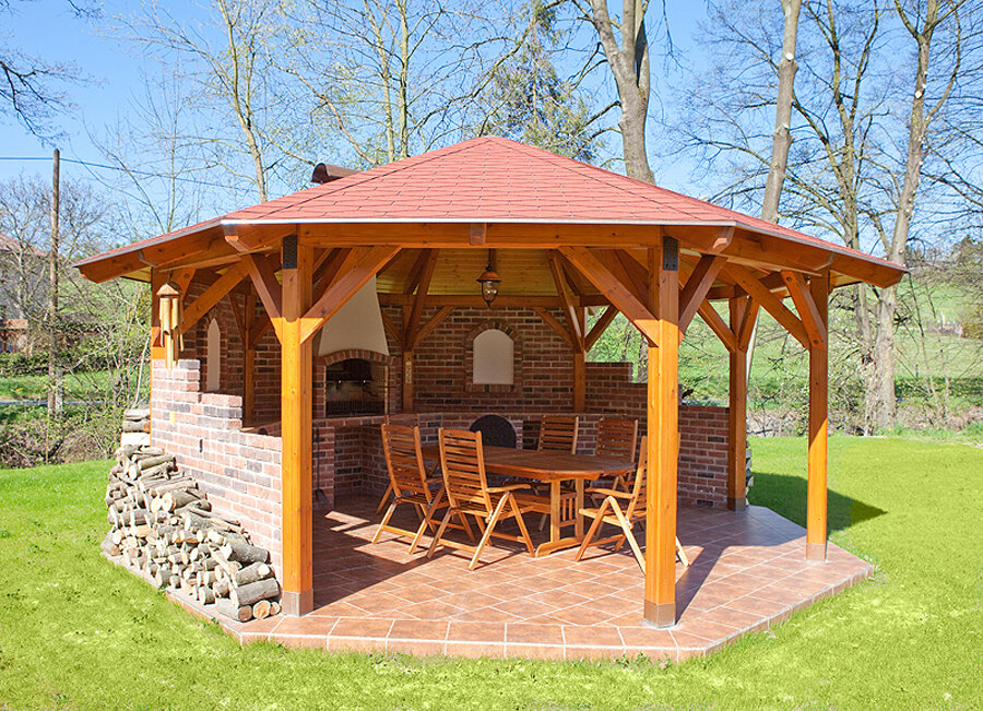 Беседка со встроенным очагом мечта многих. Не секрет что пища приготовленная на свежем воздухе гораздо вкуснее да и принимать ее в такой беседке гораздо приятней. Сметная стоимость материалов данной беседки немногим чуть более 55000 руб. И если у вас есть навыки в элементарных строительных работах, то к лету вы сможете уже наслаждаться отдыхом в собственной беседке. Я для себя предусмотрел использования компактного газового баллона. И обыкновенной двухкомфорочной газовой плиты. И использую ее исключительно для жарки рыбы. Для столешницы использовал широкий полированный керамогранит, смотрится отлично и хорошо мыть. Провел воду в мойку . Очень удобно. Вот еще пару вариантов один более бюджетный. Другой в более современном стиле с газовым грилем. Эта пергола, вряд ли подойдет для наших дождливых широт, удобней было бы иметь крышу.