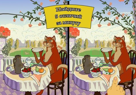 Всем привет! Очень занимательная картинка, найдите 5 отличий не более чем за минуту!