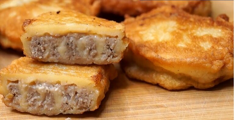 Вкуснейший перекус из фарша с говорящим названием «Минутка» выручит вас в любой ситуации. Если хочется приготовить что-то оригинальное, а в холодильнике стандартный набор продуктов, сделайте такие мясные рулеты в кляре. Внешне закуска очень похожа на оладьи: а внутри находится сочный мясной сюрприз. Сделайте мясные рулеты заранее, заморозьте их впрок и используйте по мере необходимости. Тогда приготовление блюда у вас займет не более одной минуты. Универсальный рецепт – это настоящая палочка-выручалочка, когда гости уже на пороге или домашние просят чего-то вкусненького. Необходимые ингредиенты: Для кляра: Вкуснейший перекус из фарша «Минутка»: пошаговый процесс приготовления Вкуснейший перекус из фарша готов: рулетики в кляре можно подать на завтрак или на ужин, взять с собой на работу. В мясную начинку можно добавить обжаренные с луком свежие грибы: тоже будет очень вкусно. Другие идеи для перекуса смотрите на нашем сайте «Девчата»: мы приготовили для вас много интересных рецептов.