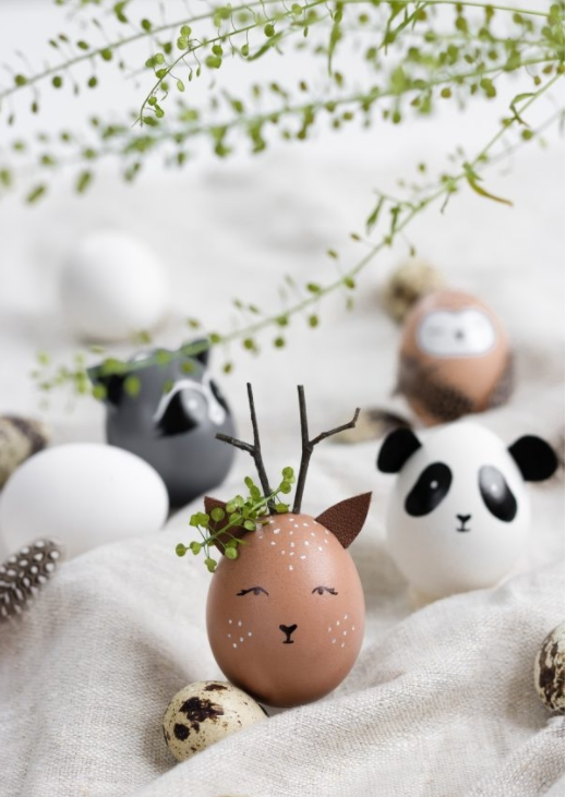 Не знаете чем занять детей на пасху? Минимум усилий и на вашем столе целый зоопарк из простых яичных скорлупок. В преддверии пасхи все задумываются как же украсить пасхальные яйца на этот раз, как оформить дом. Мы предлагаем вам идею которая может быть как съедобными яйцами для угощения гостей, так и украшением праздничного стола. К тому же, вы надолго займете ребенка и прекрасно проведете время. Пасхальные зверушки в минималистичном стиле: 1) В зависимости от того хотите вы потом представить этих зверушек в виде блюда на пасху или оставить украшением вам нужно сварить, или опустошить яйцо. Извлечь желток можно сделав две маленькие дырочки сверху и снизу яйца с помощью иголки и подув в одну из них. Желток легко вытечет оставив вам пустую скорлупу. 2) Если вы хотите сделать съедобные яички то не советуем вам использовать краску, возьмите за основу натуральный цвет яиц, белый или бежевый. Лучше всего будет смешать два вида. 3) Если вы хотите порадовать ребенка веселой поделкой, то бере