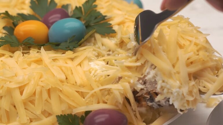 Праздничный салат «Пасхальное гнездышко»: пошаговый процесс приготовления