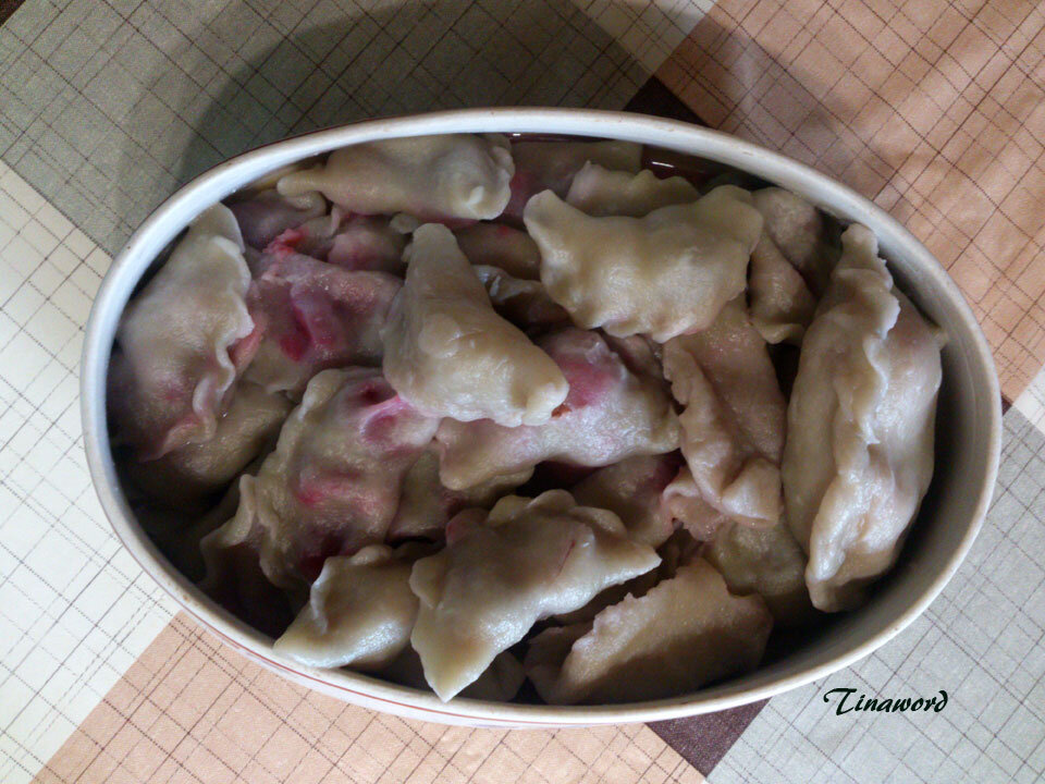 По вкусу хорошо, но к сожалению я положила соду в тесто и когда вареники остыли, то стали синими...