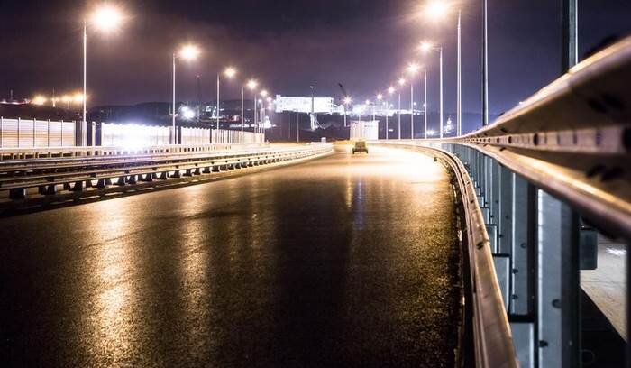 На Ютубе уже сегодня можно увидеть довольно много видео связанных с готовностью дорожного полотна как на автоподходах, так и на самом мосту. Однако положить асфальт и нарисовать разметку на таком сложном сооружении еще не всё. Ведь транспорт будет двигаться в районе Азовского моря, а это сильные туманы, невероятно интенсивные осадки и очень серьезные ветра. Официальный сайт строительства Крымского моста рассказал сегодня о новом этапе обустройства - это мачты освещения, которые должны освещать дорогу не только на мосту, но и на автоподходах. Например, новая дорога к Крымскому мосту со стороны Краснодарского края (о которой мы подробно писали) получит около 1500 мачт освещения. Мачты освещения представляют собой металлические силовые опоры высотой 9 метров с функцией автоматического включения в случае ухудшения видимости. Параллельно освещению, строители активно устанавливают не менее важные элементы. Во первых, это рассекатели воздушных потоков. Это такие треугольные конструкции пр