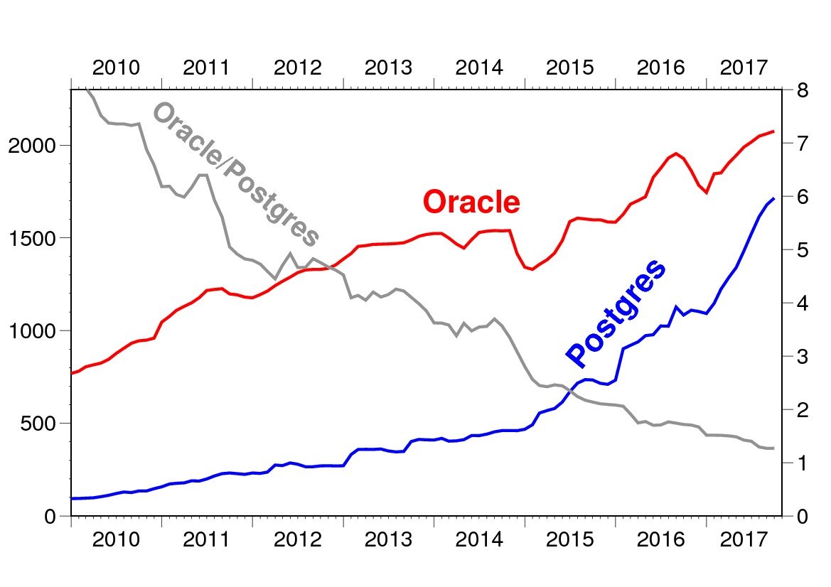 Postgres созрел. Это хорошая альтернатива более старым коммерческим базам данных. Во всем мире сейчас понимают, что Postgres — это продукт такого же класса, как киты: Oracle, Microsoft SQL Server и DB2, про последний из которых уже почти забыли, но тем не менее, это хороший продукт.