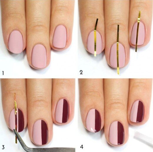 Чтобы сделать красивый и простой маникюр дома, не нужно тратить много времени и усилий. Главное — подойти к делу творчески и с вдохновением! Трюки из этого материала обязательно вам понравятся! Быстрый маникюр Стеклянная пилочка — шикарный инструмент! Если у тебя слоятся ногти или же ногтевая пластина имеет неровный рельеф, такая пилочка поможет исправить эти дефекты. Кроме того, ее без проблем можно мыть и дезинфицировать. Если лак случайно попал на кутикулу, очень удобно убирать загрязнения тонкой кисточкой, смоченной в жидкости для снятия лака. В качестве такой кисти можно использовать старую от подводки для глаз или же слегка подстричь обычную кисточку для нанесения лака. Схема для быстрого и крайне аккуратного маникюра! Всегда меня выручает. Накрасив ногти таким образом, ты сэкономишь время и не испачкаешь руки. Перед тем как наносить лак, протри ногти лимонным соком — это отбелит и укрепит их. Оригинальный маникюр за 5 минут! Такие узоры сейчас пользуются популярностью, они пох