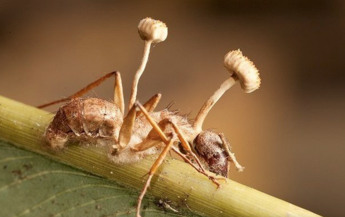 Аскомикотовый гриб рода Кордицепс превращает муравьев-древоточцев в зомби. Этот факт кажется чем-то из рода фантастики, но это не совсем так. На Земле есть такой паразит называется - Сordyceps unilateralis. Этот паразит попадает внутрь организма муравья. Гриб контролирует муравья для поиска места размножения. Это должно быть теплое и сухое место. Когда такое место муравей находит он погибает. Из его головы начинает расти гриб. Как оказалось данный паразит существует на земле уже более 48 миллионов лет. Некоторые виды этого паразита способны управлять не только муравьями, но и, к примеру, мышами. Надеюсь этот паразит никогда не дорастет до человека, еще и человеческого зомби-апокалипсиса нам не хватало:)