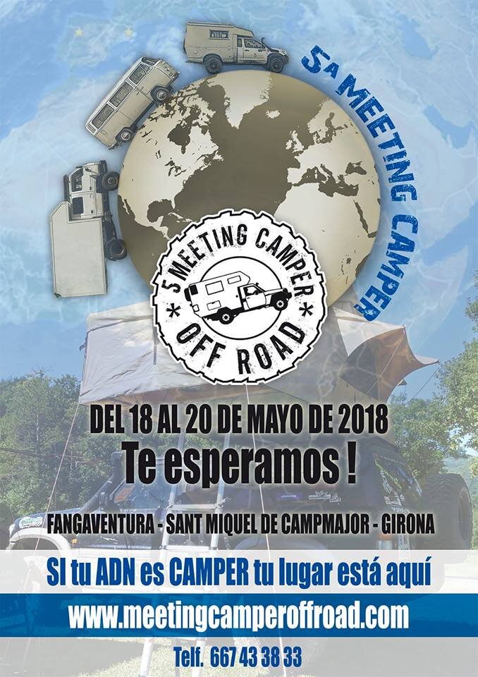 Пятая международная встреча любителей внедорожных приключений и владельцев автодомов 4х4 Meeting Camper OFF-ROAD 2018 пройдет в Fang Adventure с 18 по 20 мая 2018 года. Meeting Camper является ежегодным местом встречи для многих путешественников и авантюристов OverLAND и OFF-Road. Это самое большое в Испании мероприятие подобного рода, на котором происходит обмен опытом и информацией, знакомство с оборудованием, снаряжением, демонстрация и продажа новых и подержанных внедорожных кемперов. Встреча состоится с 18 по 20 мая в центре активного отдыха Fang Adventure вблизи деревни Sant Miquel de Campmajor недалеко от Жироны (Испания). Подробности, новости и регистрация на сайте встречи Meeting Camper OFF-ROAD 2018