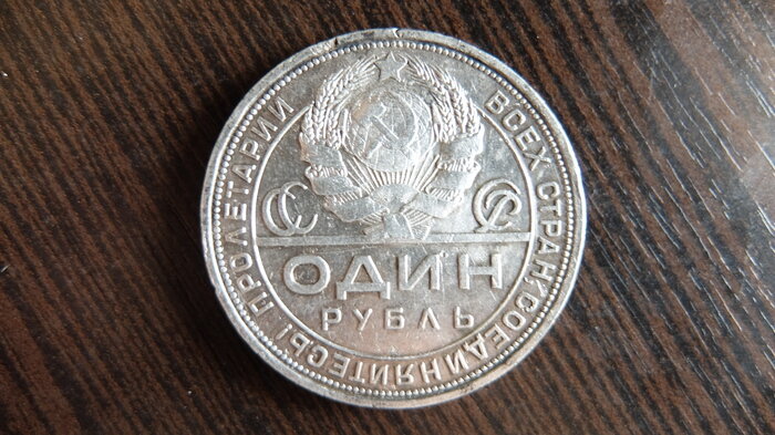 Купили мои родители как-то дом в деревне. Деревня старая, согласно википедии первое упоминание датируется 1834 годом. Дом - типовой барак тысячадевятьсотраннего года постройки. Спустя несколько лет мы построили новый дом, а старый барак стали сносить. В стенах находилось множество старых газет разных лет, но хотелось найти что-нибудь ценное: какую-нибудь монету, значок тех лет. Есть такая традиция - класть монету под первое бревно. Конечно, это был не частный дом, а типовой барак, и вряд ли при его постройке кто-то об этом думал, но всё равно - а вдруг? Но нет. Ничего не было. Разобрали весь дом. Разбили весь фундамент. Так ничего и не нашли. И вот, когда уже стали рыхлить землю культиватором под грядки, после очередного прохода на поверхность вылезла вот эта монета: Это, пожалуй, самый первый красивый рубль, который чеканился в советском союзе. К сожалению, чеканился он только один год, но его красота доходит и до наших дней. На одной монете выражено трудолюбие и дружеские качест