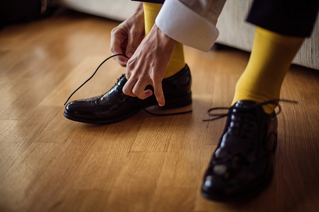 Фиолетовые, зеленые, желтые – носки могут быть любого цвета, но нужно подобрать его так, чтобы это не раздражало. Лучше всего использовать цвет, который перекликается с каким-то элементом образа. Это может быть схожий оттенок или хотя бы цветовая гамма (теплая или холодная). Подберите носки, совпадающие с рубашкой, галстуком или жилетом. Если решитесь надеть контрастные носки, сделайте их единственным ярким пятном на фоне однотонной одежды. Классический узор Носки с узорами – отличный способ сделать свой look ярче, но у всего есть предел. Не каждый отважится надеть с классическим костюмом носки, украшенные уточками или пивными кружками, да и окружающие не всегда способны оценить такой шаг. Горошек, клетка или полос