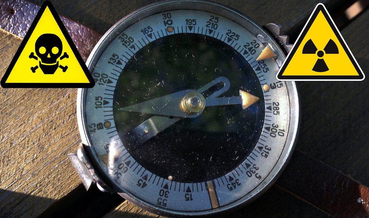 Стороны горизонта на местности определяются по компасу, небесным светилам и местным признакам. Наиболее распространен способ определения сторон горизонта с помощью компаса. Рассмотрим же подробно очень широко применяемый компас Адрианова. В корпусе компаса помещено кольцо с 120 делениями (лимб), на котором нанесены два ряда цифр. Один ряд цифр, находящийся непосредственно над делениями, дан в градусной мере по ходу часовой стрелки; другой ряд цифр против хода часовой стрелки означает деление угломера. Сверху корпуса укреплена вращающаяся вокруг лимба крышка с прорезью и мушкой для визирования в любом направлении, причем мушка всегда направляется в сторону наблюдаемого предмета. При определении сторон горизонта следует отпустить тормоз, установить компас горизонтально и поворачивать его так, чтобы северный конец магнитной стрелки оказался против нулевого деления шкалы. В этом положении компаса буквы "В", "Ю", "З" укажут направления на восток, юг и запад, а нулевое деление шкалы - направ