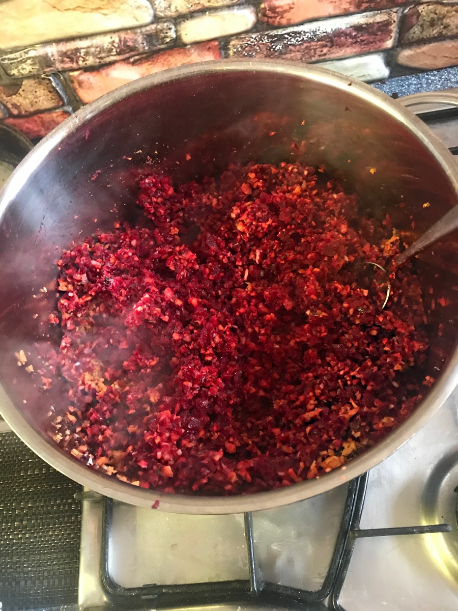 Здравствуйте, сегодня мы приготовим вкусную икру из овощей , а точнее из свёклы. Она украсит любой праздничный стол и всем придётся по вкусу. Итак, начнём. Ингредиенты: 1. Свёкла - 3-4 шт. 2. Морковь - 3-4 шт. 3. Репчатый лук - 3-4 шт. 4. Соль, перец, специи по вкусу 5. Чеснок 6. Подсолнечное масло ПРОЦЕСС ПРИГОТОВЛЕНИЯ: Для начала вымоем наши овощи и очистим от кожуры. Далее измельчаем всю морковь и свёклу до состояния кубиков ( желательно в измельчителе) . Теперь порежем мелко репчатый лук. Берем глубокую сковородку или большую кастрюлю с толстым дном. Ставим на огонь , наливаем подсолнечное масло. Добавляем в кастрюлю ( сковородку ) свёклу, морковь и лук. Солим, перчим, добавляем любимые специи. Перемешиваем. Оставляем тушиться под крышкой 5 минут на среднем огне. В это время очищаем 4 зубчика чеснока. Мелко нарезаем их и добавляем в наши овощи. Всё тщательно перемешиваем , оставляем под крышкой на среднем огне на 20-30 минут. За 10 могут до готовности, добавляем 100 граммов ке