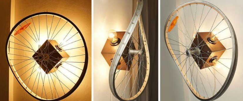 Что сделать из старых велосипедных колес Иногда дорогой сердцу велосипед становиться непригодным для передвижения, и его место занимает другой новенький байк. И нельзя вот так сразу взять и выбросить старый велосипед. Сегодня мы сделали подборку идей о вторичном использовании старых велосипедных колёс. Фоторамка из велосипедного колеса Всё что вам понадобится место на стене для дорогих сердцу колёс и фотографий. Несколько прищепок, и несколько минут свободного времени. Особенное место может занять "ретро-фотография" былых времен с вашим любимым велосипедом. Кресло из велосипедных колес Люстра из велосипедного колеса Ваш старый велосипед ещё "зажжёт". Сделайте из него велолюстру, понадобиться немного вашего умения при прикреплении лампочек и их соединении в цепь, и старое колесо. Барные стулья из велосипедов Старое велосипедное колесо может выглядеть очень стильно. Можно не только посидеть в баре с друзьями, но и покрутить педали. Мангал из велосипедного колеса Ваше старое колесо м