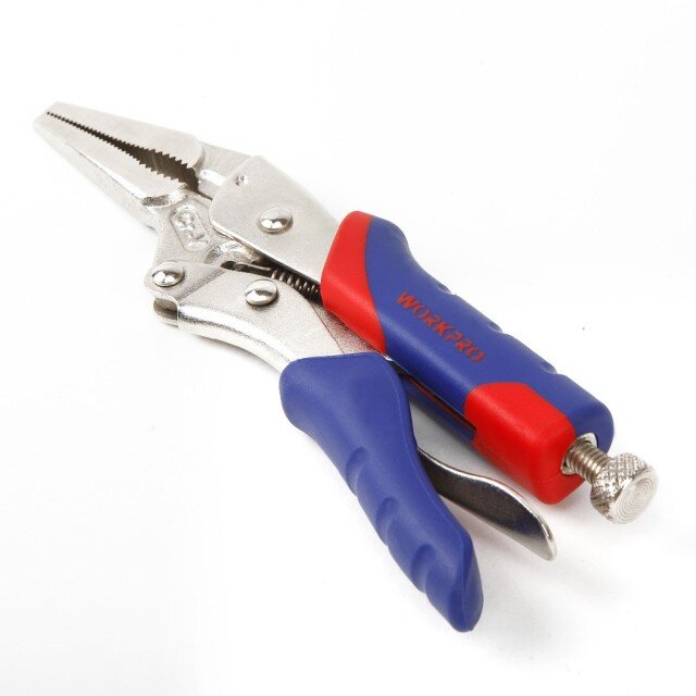 Плоскогубцы с зажимом Длина инструмента составляет 165 миллиметров. Этим инструментом будет удобно подлезть туда, где большие плоскогубцы не помещаются. Изготовлены они из прочной хромованадиевой стали. Для более удобной эксплуатации есть прорезиненные ручки, так что хват будет прочный, рука скользить не будет. Губки сведены нормально. Для надежной фиксации в зажатом положении имеется регулировочный винт для изменения силы сжатия. Термофен для пайки Термофен с регулировкой температуры воздушного потока очень полезный инструмент для пайки. Им удобно выпаивать и впаивать детали с большим количеством контактов. Также этот фен пригодится для работы с термоусадкой, для точного нагрева различных объектов. Мощность фена составляет 450 Ватт, максимальная температура 450 градусов Цельсия. С помощью дисплея можно точно регулировать силу воздушного потока термофена. В комплекте идет 4 насадки с диаметром выходного сопла от 3 до 10 мм, европейская вилка и подставка для термофена, так что ничег