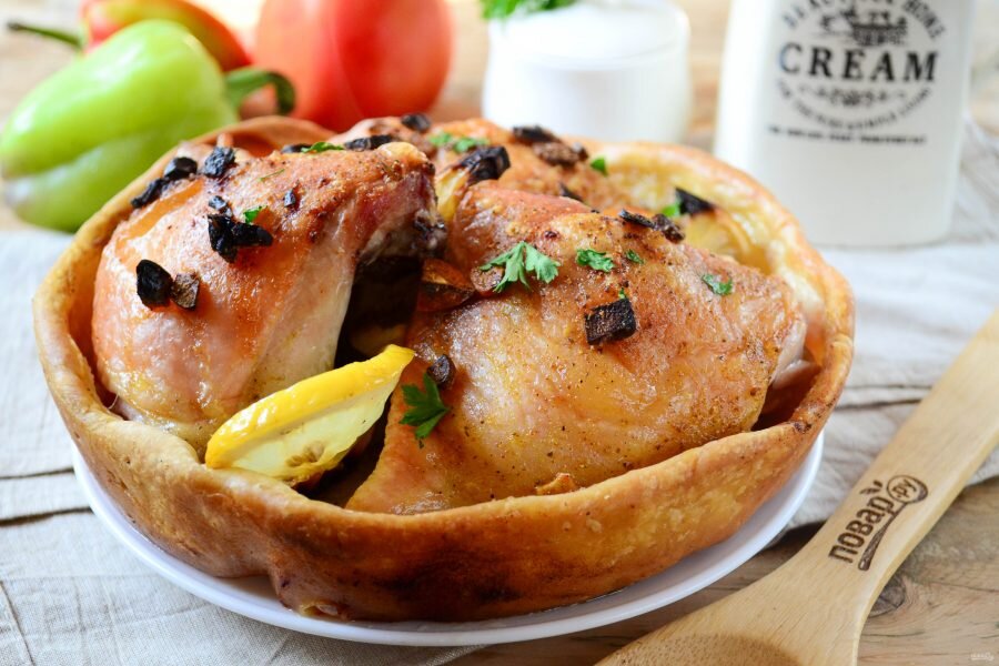Запеченная курочка в съедобной тарелке
