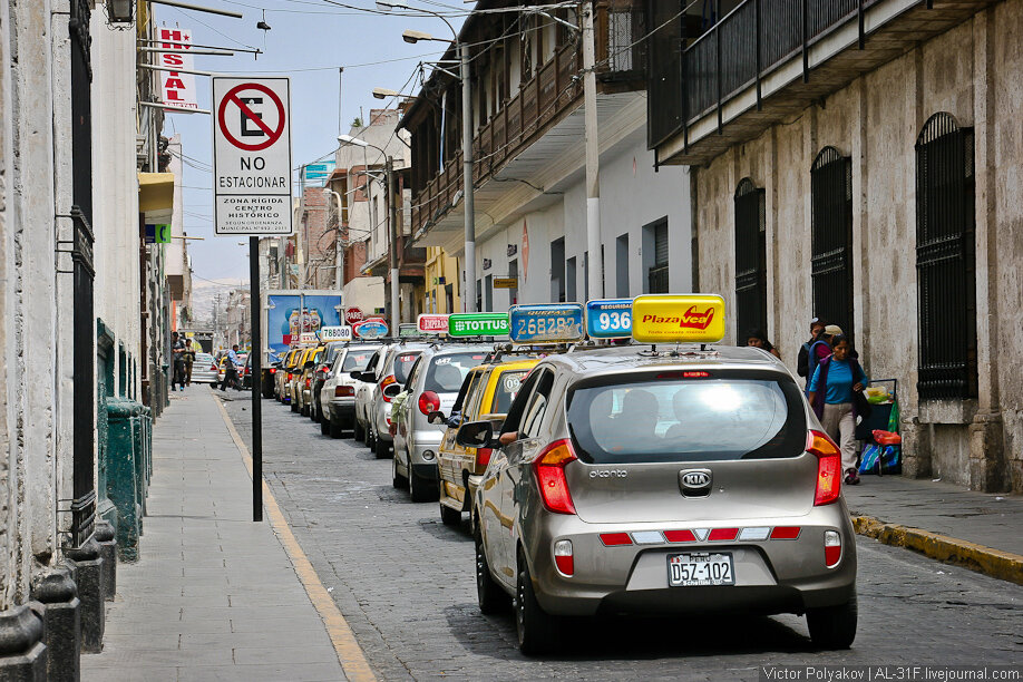 Итак, мы приехали в Арекипу рано утром. Здесь у нас не было ни брони в гостинице, ни "друзей" из каучсёрфинга. На вокзале стояла будка с надписью "бесплатный трансфер в отель". Там нас и уговорили поселиться в гостинице недалеко от центра. Цена нас устроила, описание отеля тоже. Сомневались только в тётке, которая взяла у нас деньги за жильё и посадила в случайное такси.