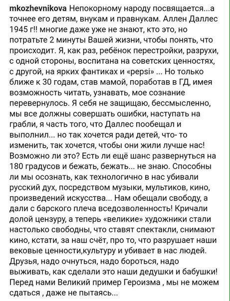 "План Даллеса" , одна из самых известных теорий заговора в России, была особенно популярна в 2000-х , но и сейчас периодически всплывает в СМИ и среди лидеров мнений в социальных сетях. Недавно , актриса и депутат государственной думы Мария Кожевникова разместила у себя на странице в Instagram призыв бороться с пагубным воздействием "Плана Даллеса". Поэтому мы решили разобраться : что это за план и откуда он взялся?
