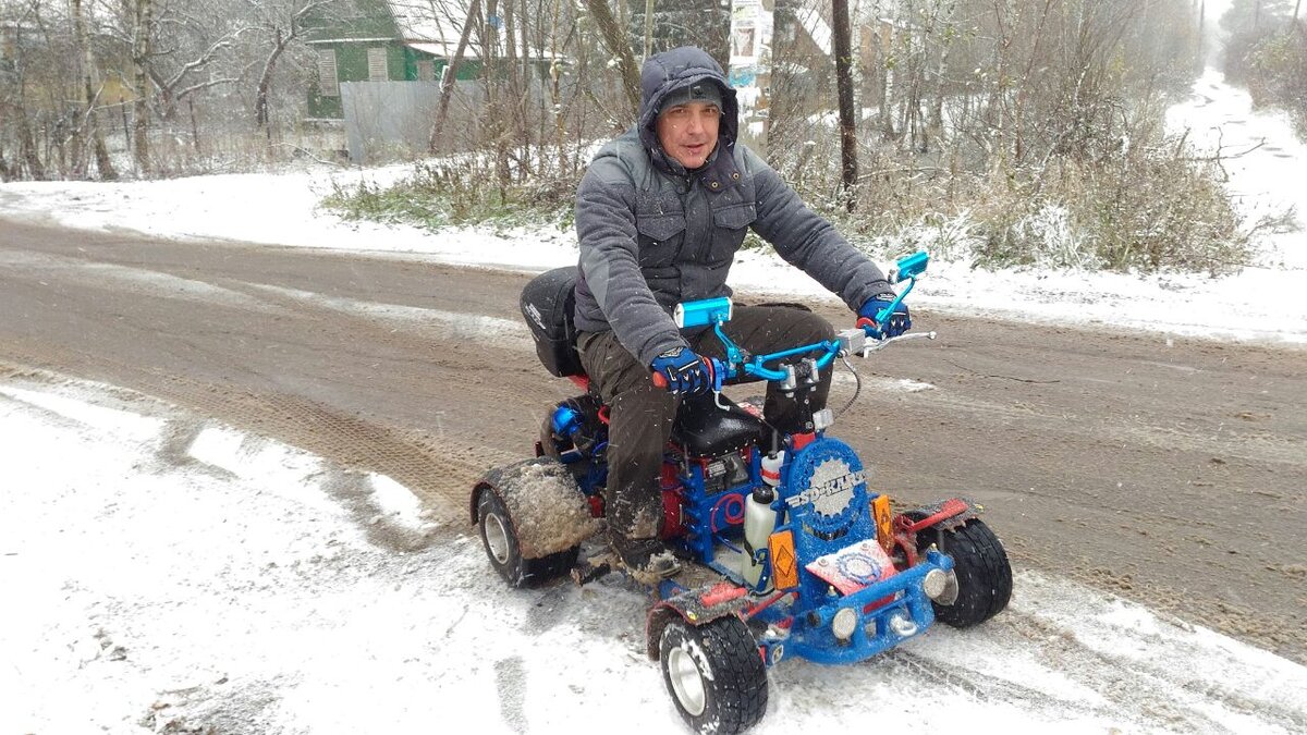 Тарабайк -это веселое средство передвижение для детей и взрослых, которое можно собрать самостоятельно из запчастей от карта и садовой техники. Её так же называют бешеная табуретка, детишкам очень нравиться кататься на тарабайках, они просто в восторге от веселых покатушек) Рама байка изготавливается как правило из металлического профиля квадратного или же прямоугольного сечения, понадобиться совсем немного 2-3 м. Размеры остова произвольные и зависят только от фантазии автора. Большая часть запчастей от карта, остальное от садовой техники, двигатель четырехтактный с редуктором, руль велосипедный, дополнительно ставятся средсва освещения и светоотражающие элементы Предварительно давайте посмотрим виде семейных покатушек на тарабайке, а затем разберем пошаговые фото сборки. Рама сварена из профиля квадратного сечения, установлены передние ступицы колес. Установлен четырехтактный двигатель Рулевое управление сделано следующим образом, а именно рулевая стойка соединяется с тягой объеди