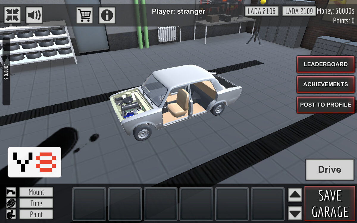 Игроку уготована роль автомеханика, который ремонтирует и делает тюнинг автомобилям ВАЗ. В гараже доступны две модели: ВАЗ 2106 и 2109. Необходимо покупать запчасти в магазине, устанавливать их на автомобиль и настраивать. Готовый автомобиль можно протестировать на треке. Поиграть можно тут.