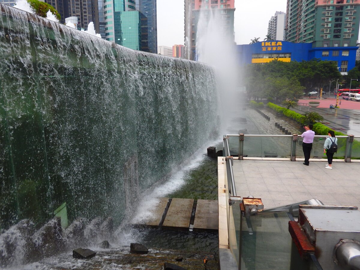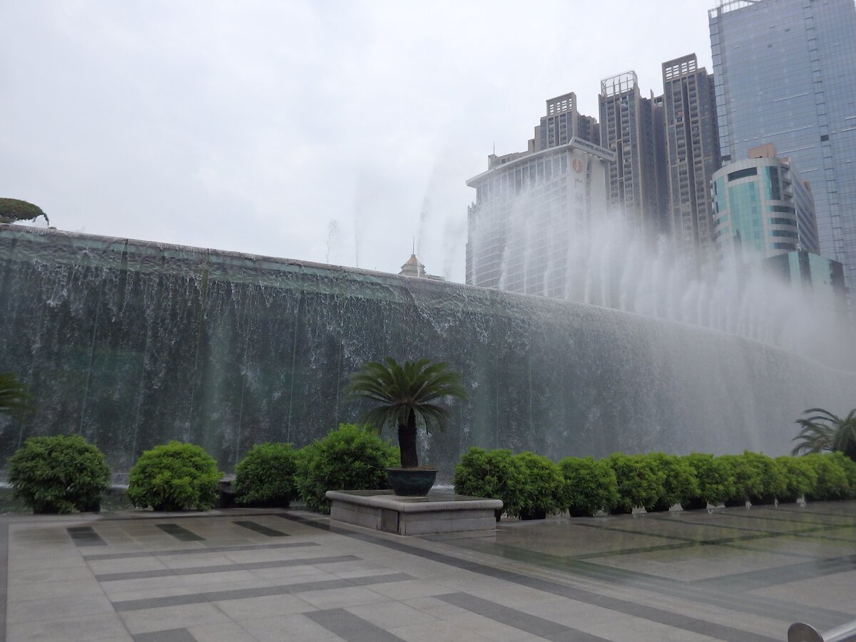 Водопад в центре Гуанчжоу. Небоскребы - это, конечно, круто. Но кого сейчас ими удивишь? А вот огромный водопад прямо в центре запомнится надолго.