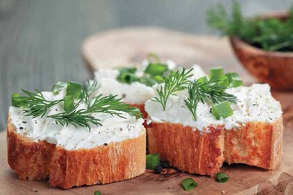 соль и свежемолотый чёрный перец по вкусу Приготовление: 1. Чеснок очистить и натереть. Пармезан натереть на мелкой тёрке. Половину пучка зелёного лука и укропа промыть, обсушить и нарубить. 2. Смешать майонез с чесноком и чёрным перцем. Затем добавить пармезан, измельчённый голубого сыр, посолить. Всё тщательно перемешать. 3. Разогреть духовку до 200 °C. Багеты нарезать по диагонали. Смазать с одной стороны оливковым маслом и выложить смазанной стороной на противень. Поставить в духовку на 5–7 минут до лёгкого подрумянивания. 4. Достать ломтики из духовки, намазать сырной массой. Выложить тосты на блюдо, посыпать зелёным луком и укропом. Сразу подавать. Благодарим за внимание!! Готовь