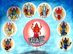 В ведической астрологии считается, что каждая из планет (грах) обладает своей уникальной энергией и воздействует определенным образом на человека с момента его рождения. Это очевидно из гороскопа. В индийской астрономии и астрологии Наваграха означает девять небесных тел (грах). Слово «граха» ещё переводят как то, что имеет своё влияние, имеется ввиду на человеческую жизнь. К наваграхам относят пять планет Меркурий, Венера, Марс, Юпитер и Сатурн, а также Солнце, Луну, Раху (северный лунный узел) и Кету (южный лунный узел). Раху и Кету не являются небесными телами, это точки пересечения лунной орбиты с эклиптикой. Главным Божеством считают Сурью – Солнце, в окружении которого пребывают все остальные грахи. В Индии существует много храмов, посвящённых Наваграхам, где проводятся различные ритуалы поклонения как сразу всем планетам – грахам, так и избранной планете, чтобы её умилостивить, иначе говоря, устранить её негативное воздействие в жизни. Мы предлагаем послушать гимн,
