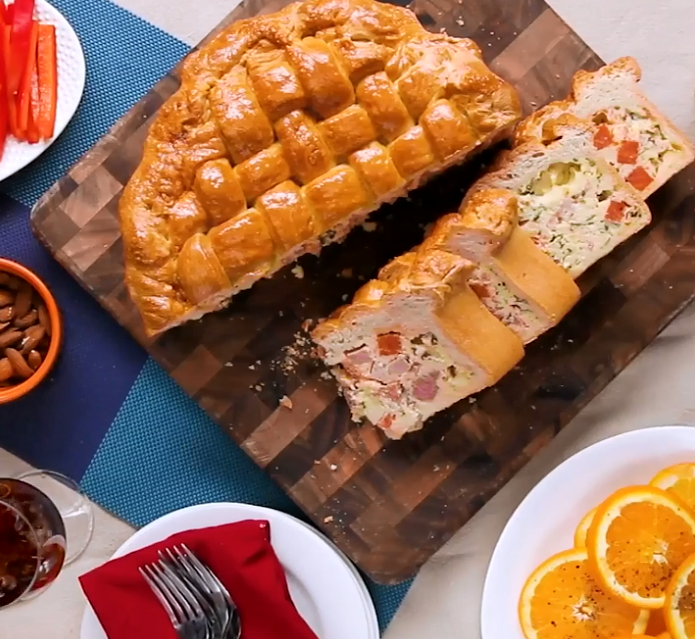 - Добавить ветчину, салями, проволоне, салями, прошутто, и хлебные крошки. Сложить в кубе мясом и сырами. Текстура должна быть плотной и слегка влажной.