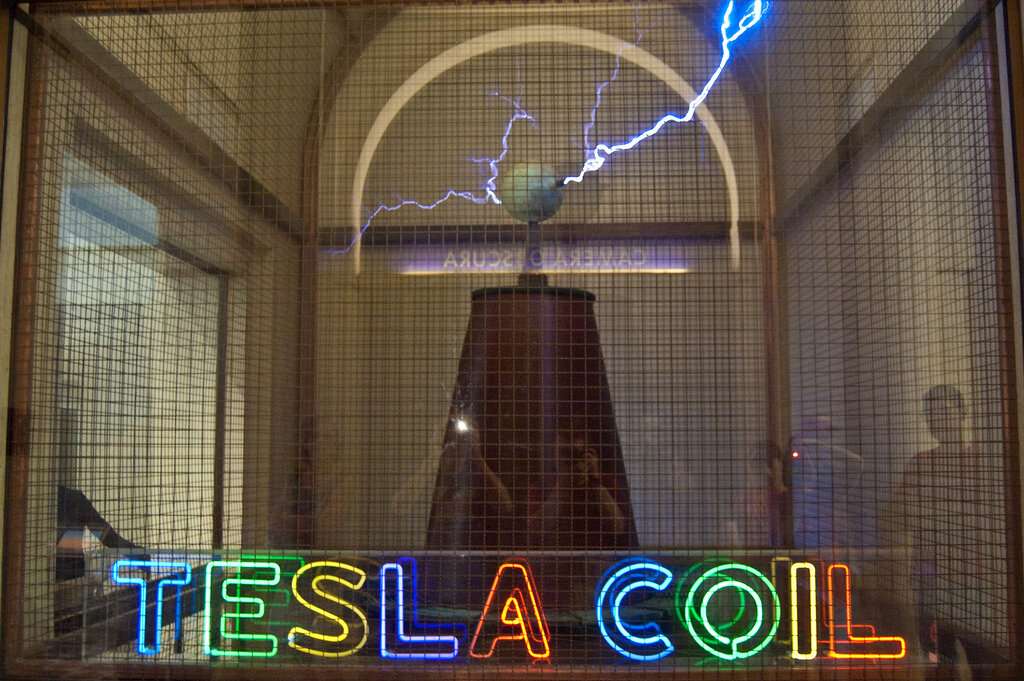 На высоком холме с видом на Лос-Анджелес живет всемирно известная мощная коническая катушка Тесла. Одним из наиболее запоминающихся экспонатов в сказочной Обсерватории парка Гриффит является катушка Тесла. Его молния выплескивает толпы местных жителей и туристов, как правило, один раз в час. Катушка Tesla заключена в недавно разработанную нишу для максимального коэффициента, а ее гигантские дуги и замечательные шумы для зондирования лучше, чем когда-либо. В то время как Тесла разработал катушку, чтобы когда-нибудь переносить электричество в мире по воздуху, эта самая большая работа этой катушки зажигает неоновый знак - тем не менее, это остается видимым. Эта особая катушка когда-то принадлежала доктору Фредрику Финчу Силму - терапевту, теософиту и энтузиасту электротерапевтического экспериментатора. Он был очарован описанием Теслы о влиянии переменных токов на его исследовательскую группу и начал экспериментировать с высоковольтными терапиями. Он продолжил писать книгу в 1908 году - «