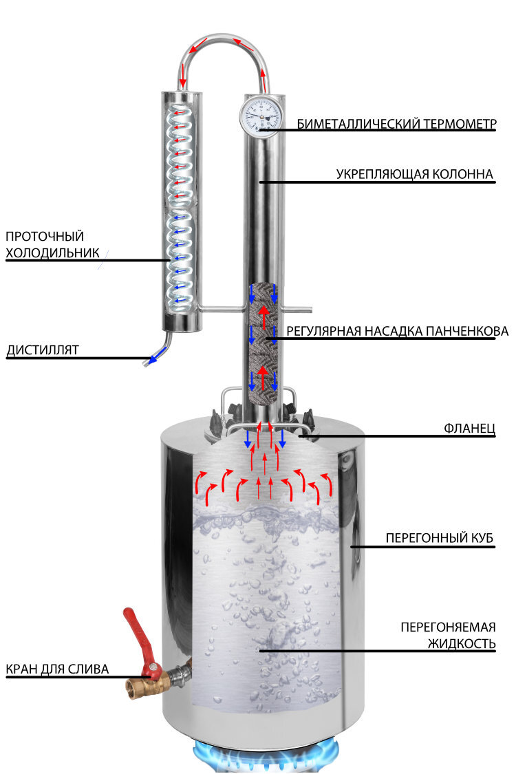 Какой самогонный аппарат выбрать? А какие они вообще бывают? Давайте посмотрим. Те аппараты, которые я видел, можно разделить на три группы: Я перепробовал все эти разновидности аппаратов (кроме аламбика) и остановился на плёночной колонне по следующим причинам: качество самогона после второй перегонки позволяет употреблять его даже без дополнительной очистки; крепость самогона 80 - 85% спирта; уменьшается вероятность заброса браги в холодильник; приемлемая цена (мой аппарат обошелся мне в 3500 рублей); неплохая производительность - 1 литр самогона в час. К тому же такой аппарат легко чистить, он прост в уходе. Можно изготовить аппарат самостоятельно, можно купить готовый. Подсчитав стоимость комплектующих, инструментов и материалов, необходимых для изготовления аппарата, а это медные трубы и фитинги, припой, флюс и газовая горелка для высокотемпературной пайки, я решил не париться и купил аппарат в магазине. Магазинов, предлагающих товары для самогонщиков, великое множество, выбор