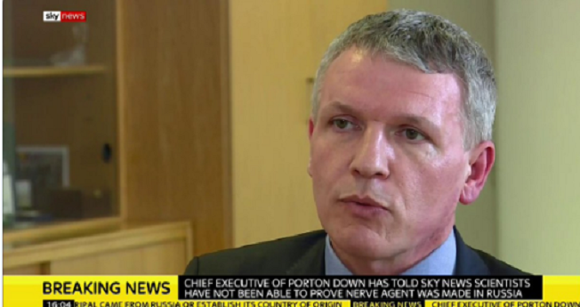 Главный ученый из пресловутого британского военного лабораторного объекта Porton Down Гэри Эйткенхэд рассказал Sky News, что они не смогли доказать, что нервно-паралитический агент Novichok, якобы используемый для отравления Сергея и Юлии Скрипалей, родом из России, отметив, что установление происхождения новичка требует "других вкладов", некоторые из которых должны быть основаны на разведке и к которым имеет доступ только правительство. "Наша работа в том, чтобы мы определили и предоставили научные доказательства того, что этот конкретный нервно-паралитический агентиз этой конкретной семьи, и что это военный класс, но это не наша работа, чтобы сказать, где он был изготовлен.<...>Мы смогли идентифицировать его как новичок, определить, что это был нервно-паралитический агент военного класса", - сказал Эйткенхед. "Мы не определили точный источник, но мы предоставили научную информацию правительству, которое затем использовало ряд других источников, чтобы собрать воедино выводы, к котор