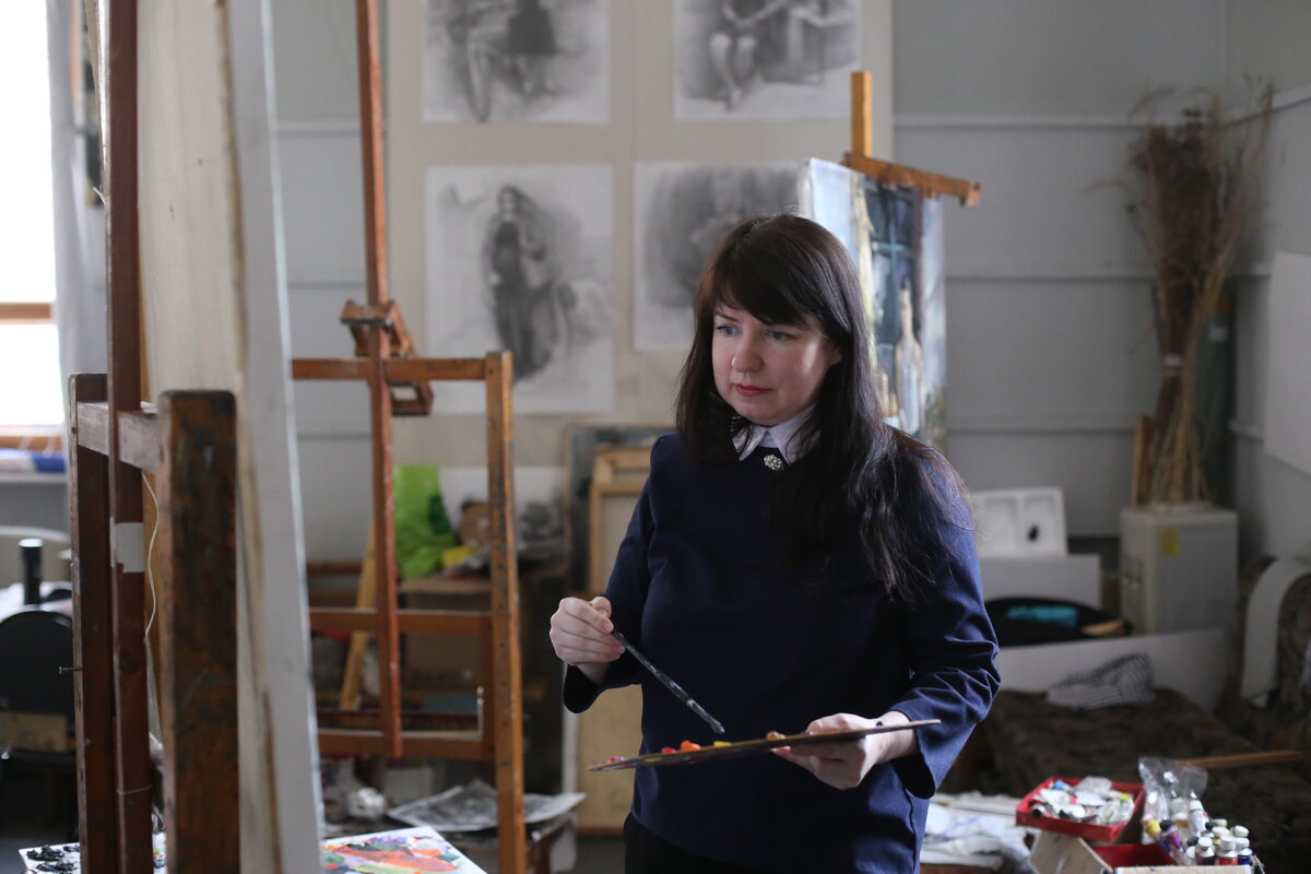 – Почему так получилось? Эта история началась, когда я была еще студенткой института искусств. Преподаватели художественного училища тогда часто выезжали по контракту на работу в Китай, это был хороший способ заработать на жизнь. Их нужно было заменять на это время. И однажды, когда уехал Андрей Токарев, взять его курс в училище попросили меня. А я еще студентка! Поговорила с деканом художественного факультета Виталием Кандыбой, он дал добро, и я согласилась. Два года преподавала в училище, сама диплом в это время защитила… А потом Виталий Ильич спросил: не желаешь ли стать преподавателем в институте, опыт у тебя есть, а у нас вакансия открылась и кадры нужно омолаживать? В общем, привел много резонов. Бери, сказал, курс. Я сомневалась, хотя для меня, молодого художника, это была невероятная честь. Ну подумайте: приходишь на кафедру работать, а там Вениамин Гончаренко, Василий Доронин – мэтры, у которых ты недавно училась. И ты с ними на равных? Сомневалась я долго, но и декан, и те самые мэтры меня поддержали.