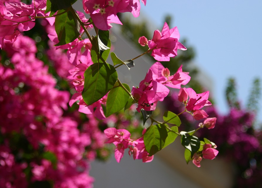 Бугенвиллея относится к семейству ночецветных, родина Южная Америка. На родине растет под открытым небом. Кустарник, который имеет плетистый рост. Прицветники сплошь покрывают кусты, имеют мелкие эффектных колеров цветки. Цветет все лето. Листья яйцевидные темно – зеленые. Период цветения – 8-9 месяцев. Требует: много света, тяжелую питательную почву, обильный полив во время роста. До цветения в период покоя она сбрасывает листья. Ежегодно после цветения укорачивают длинные ветки, так вызывают однолетние длинные побеги, на которых будущей весной вырастут цветы. Полноценный декоративный материал растения начинают представлять с двух летнего возраста. Размножение: семенами, черенками ранней весной из вызревшей однолетней древесины и корневыми черенками. В горшки сажают укоренившиеся черенки в смесь из дерновой и листовой земли с добавлением песка. Достаточно просто выращивать ее в домашних условиях, но обязательно нужно обеспечить растение просторным и очень светлым помещением. Также вы