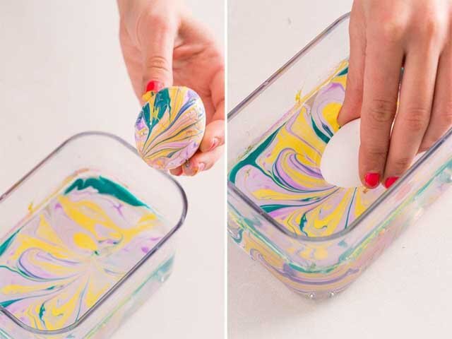 Мраморное окрашивание яиц на пасху лаком для ногтей