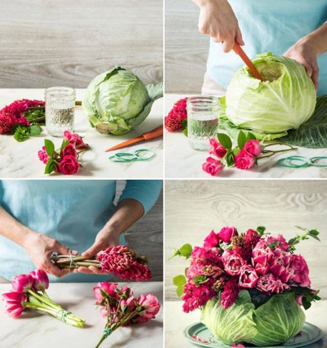 До Пасхи осталось мало времени, и вам еще многое предстоит сделать. Во всей этой суматохе, связанной с уборкой и праздничными покупками, у вас нет времени обдумать, как будет выглядеть Ваш пасхальный стол? Если вы хотите удивить своих близких и покончить с рутиной, у меня есть для Вас несколько простых идей, как освежить внешний вид столовой. Семейные встречи за таким столом, безусловно, будет незабываемыми! # 1 Капустная ваза Такая оригинальная ваза удивит всех гостей! Если вы не хотите вставлять в нее живые цветы, выберите искусственные. # 2 Золотые яйца Пасха не обходится без яичек. Поэтому стоит сделать украшения, в которых используются яйца и их скорлупа. Покрасьте несколько яиц в золотой цвет и поставьте в них небольшие цветы. Ландыши, конечно, будут очаровательны! # 3 Морковь в вазе Благодаря своему цвету, морковь прекрасно будут выглядеть в качестве украшения пасхального стола.