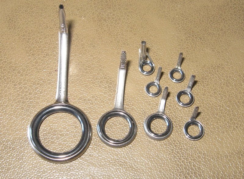 Теперь рассмотрим такую часть как кольца спиннинга. Немаловажная деталь, от которой напрямую зависит срок службы лески. Современные требования к кольцам — это максимальная твердость, гладкость, легкость и устойчивость к повреждениям. Диаметр, расположение и количество колец очень влияют на дальность заброса, особенно при работе с легкими приманками. Это касается телескопических удилищ, на которых кольца ставятся не по расчету, а там, где это позволяет конструкция. Внимание! В азарте ловли рыболов часто загоняет вертлюг поводка в верхнее пропускное кольцо (тюльпан) и если этого вовремя не заметить, то в последствии чревато его расколом. Совсем другое дело — составные двух коленные или трех коленные бланки известных производителей. Расчет расстояния между кольцами ведется с помощью компьютерной диагностики влияния различных нагрузок на бланк и его поведение при рывках. Нет смысла не доверять им. Выбор остается за вами. Либо мобильная телескопическая конструкция, либо качественная колен