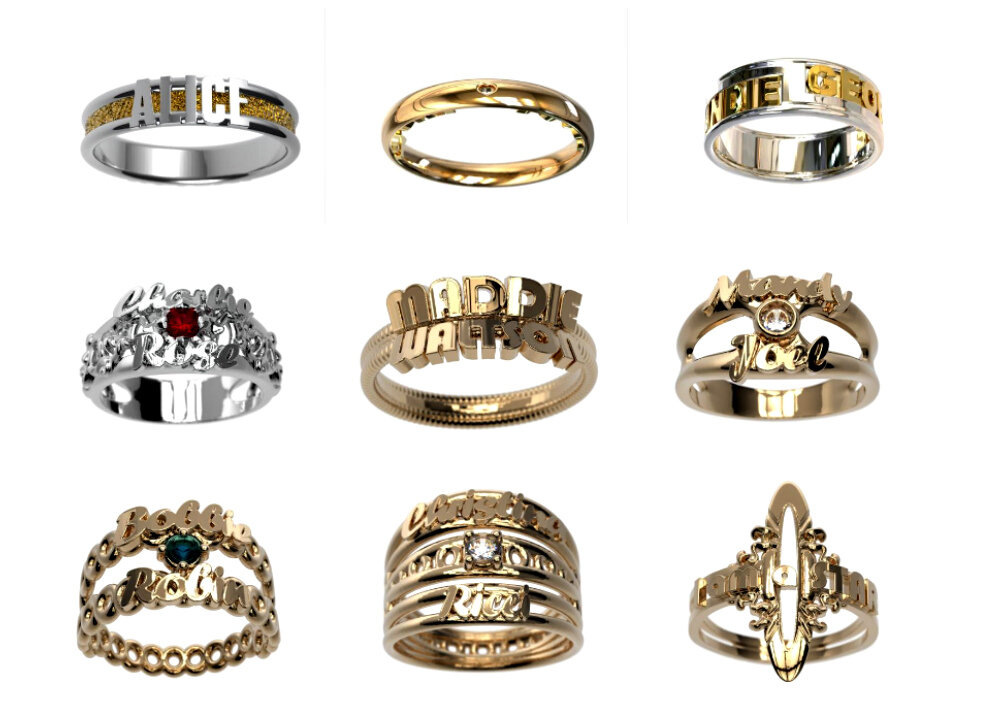 Сервис Polychemy из Сингапура предлагает клиентам уникальные кольца или подвески с именами и монограммами, которые можно оформить в восьми видах металла и в десяти видах драгоценных камней. На сайте можно найти готовые ювелирные изделия ценой от 90 долларов. Компания была создана группой художников и программистов, которые ставят перед собой цель объединить моду и технологии. Изделие, к примеру, может быть изготовлено в серебре, палладие, платине, золоте, содержать аметисты, изумруды или бриллианты. Большинство моделей имеют место для текста. Кроме латиницы, шрифт может быть создан на русском, хинди, японском, иврите и многих других. Разработчики сервиса используют технологии Big Data, чтобы добиться максимальной персонализации дизайна. После распечатки формы на 3D-принтере, отливки и гравировки, украшение бесплатно отправляют в любой конец света.
